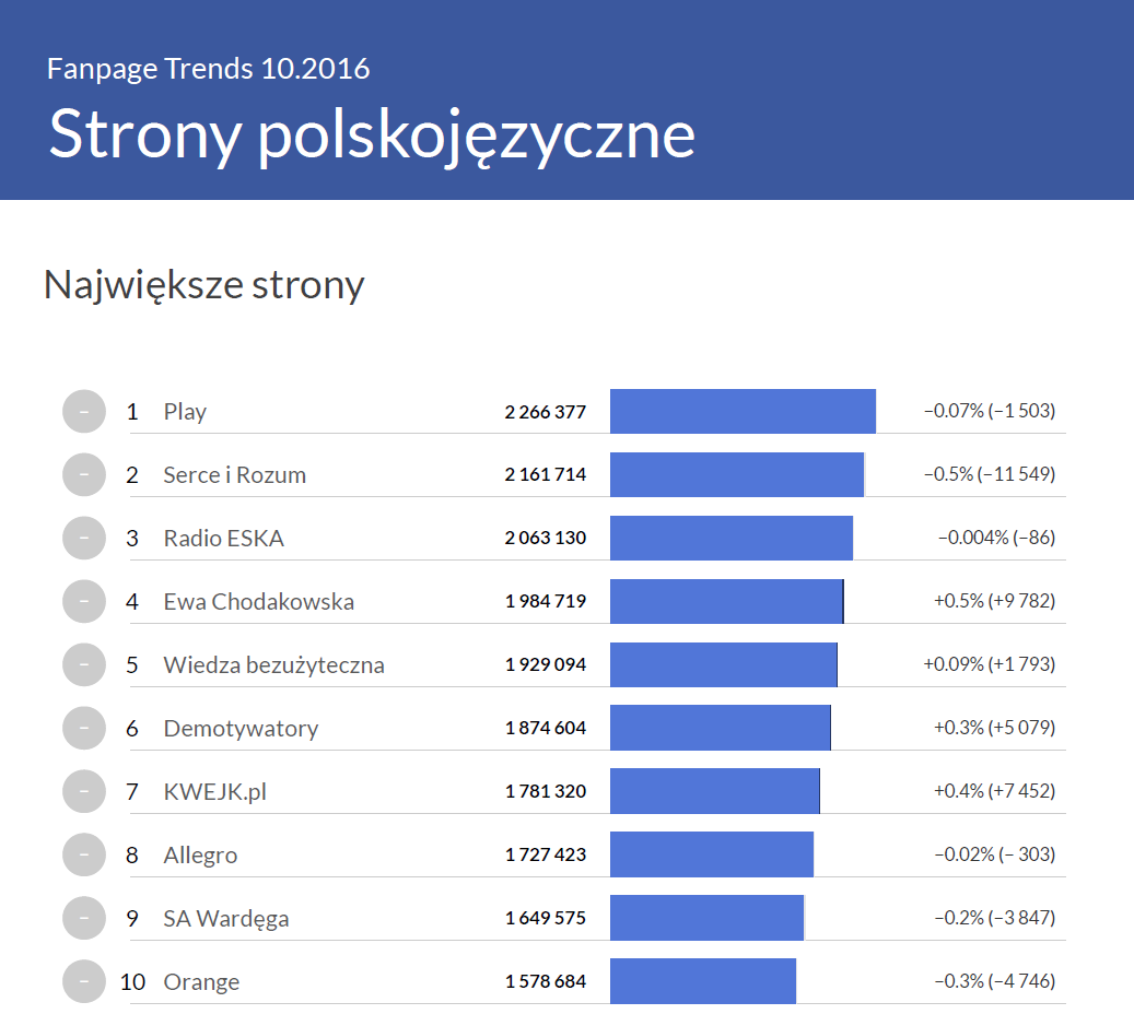 Największe strony na polskim Facebooku - Fanpage Trends październik 2016