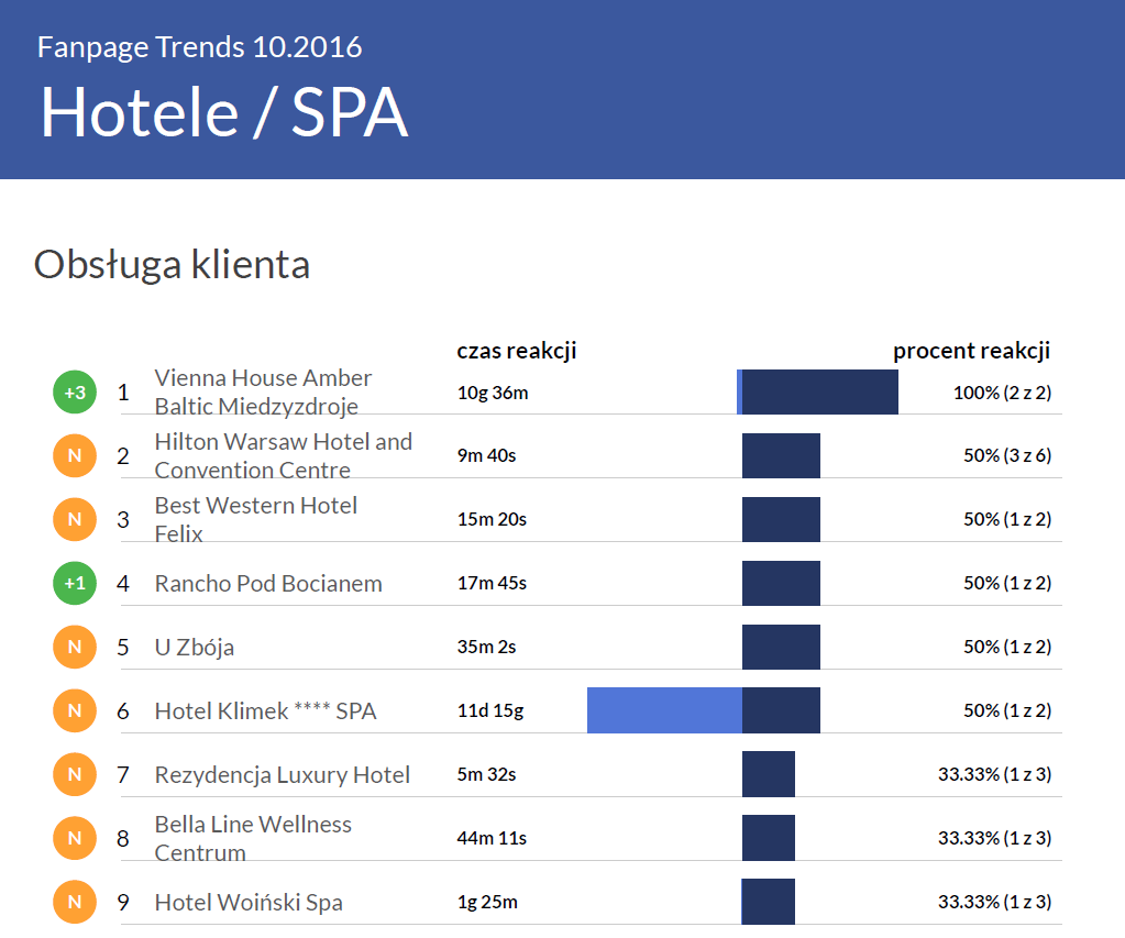 Obsługa klienta w branży Hotele i Spa - Fanpage Trends październik 2016