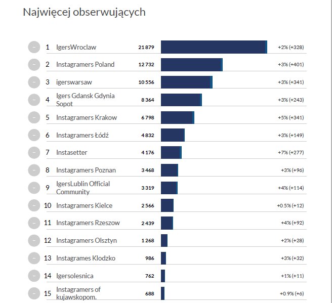 Niepodzielnie króluje tam wrocławska grupa IgersWroclaw z największą liczbą aktywności i obserwujących, wyprzedzając tym samym InstagramersPoland i igerswarsaw. Może któraś z grup spróbuje w przyszłym miesiącu szarży na wyższe miejsce i wprowadzenia jakichś kolorów w to szare zestawienie?