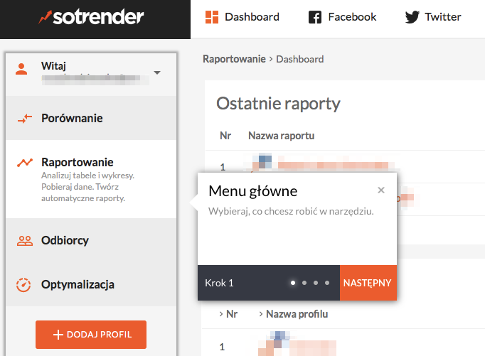 Poza samym layoutem zmienił się sposób nawigacji. Po dodaniu pierwszych profili (jeśli jesteś nowym użytkownikiem) i wejściu do panelu, powita Was przewodnik, który objaśni poszczególne elementy.