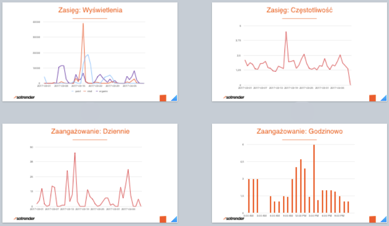 Kolejną nowością jest możliwość generowania raportów w formacie .pptx dla wybranego profilu na Facebooku. Raporty .pptx obejmują te same sekcje, co raporty .pdf, ale są edytowalne – łatwiej zatem o dodanie własnego szablonu, komentarzy czy np. zmianę kolejności slajdów. Wiemy, że wielu naszych Klientów czekało na tę funkcję, więc tym bardziej cieszymy się, że możemy ją oddać w Wasze ręce!