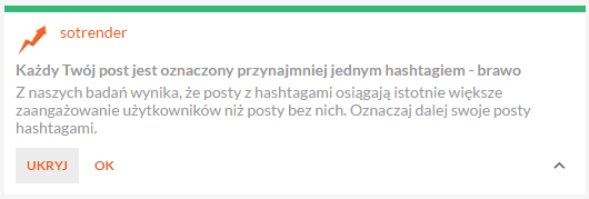 Automatyczne wskazówki oparte na naszych autorskich algorytmach i wykorzystujące terabajty zebranych przez lata danych są wyróżnikiem Sotrendera. Od dzisiaj znajdziecie wskazówki również dla Instagrama. Dzięki nim dowiecie się, co możecie zmienić, żeby docierać do jak największej liczby ludzi, jak sprawić, by wasze posty były bardziej angażujące, ale powiemy Wam też, co robicie dobrze.