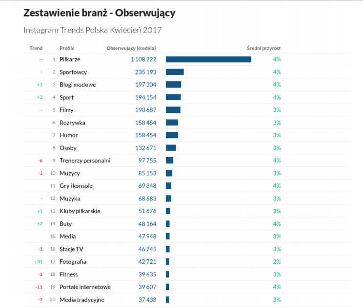 Zestawienie branż w Instagram Trends kwiecień 2017.
