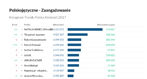 Najbardziej angażujące profile według Instagram Trends kwiecień 2017.