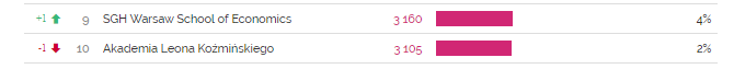 W wielu kategoriach z miesiąca na miesiąc trudno dostrzec wyraźne zmiany. Jedną z takich kategorii są Uczelnie wyższe… aż do teraz. Bo oto na naszych oczach Szkoła Główna Handlowa w Warszawie prześcignęła w ilości obserwujących Akademię Leona Koźmińskiego. Będzie odwet? 🙂