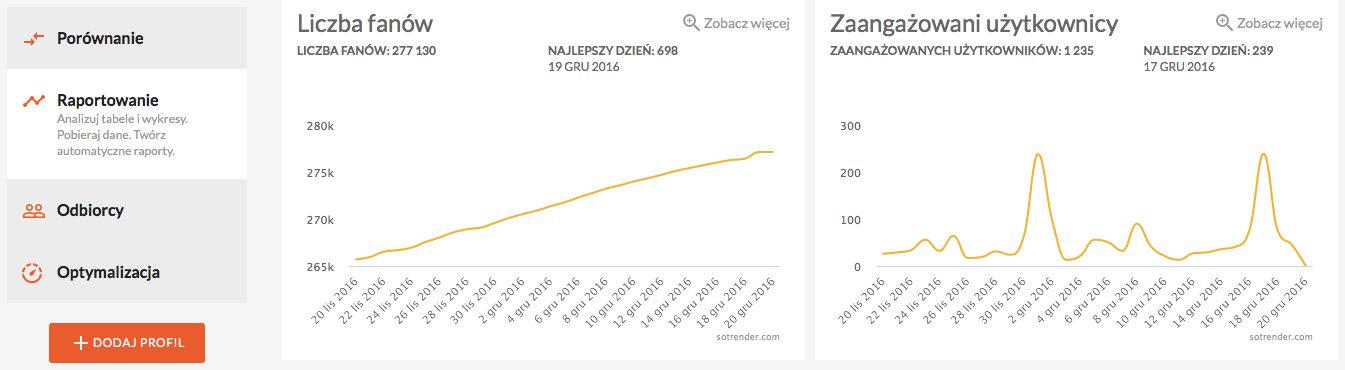• Raporty porównawcze pdf. Raporty są jedną z ulubionych funkcji Sotrendera wszystkich użytkowników. Wiemy też, że możliwość porównywania się z konkurencją jest dla was niezwykle ważna. Postanowiliśmy zatem połączyć te dwie opcje w postaci automatycznych raportów dla grup. Dzięki nowej funkcji, za pomocą kilku kliknięć wygenerujecie kompleksowy raport dla utworzonych przez Was w narzędziu grup profili Facebookowych.