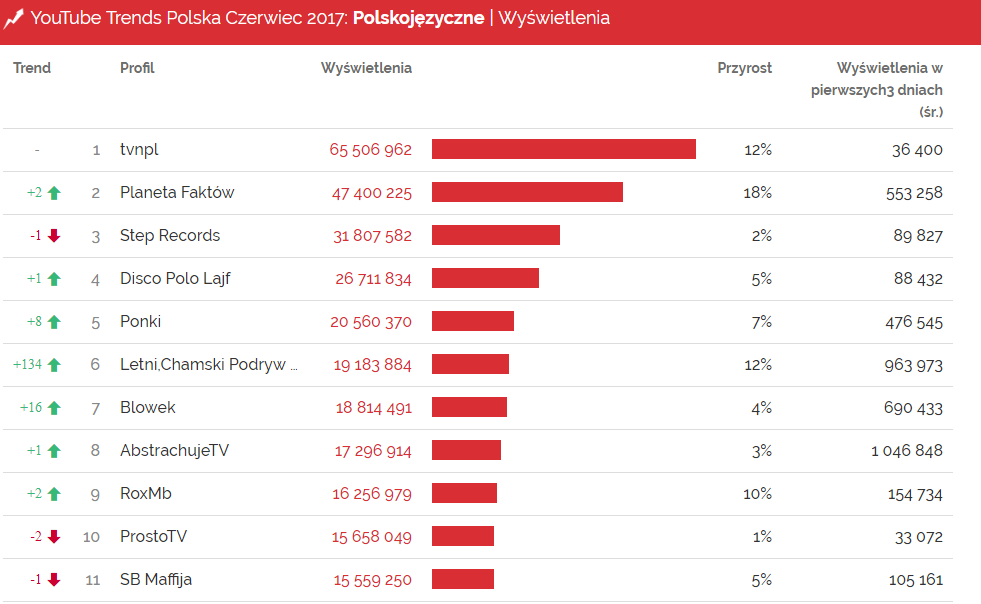 Najczęściej wyświetlane kanały na polskim YouTube – YouTube Trends czerwiec 2017