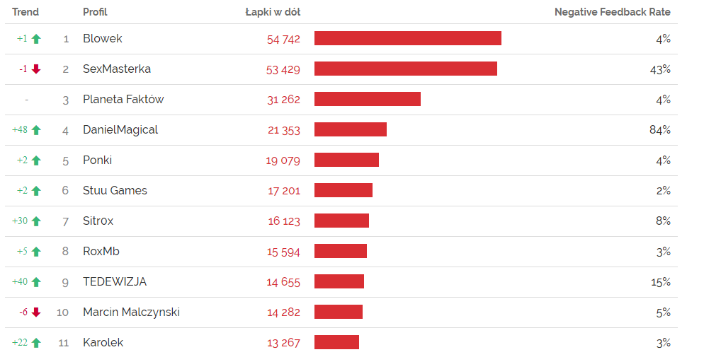 Fenomen YouTube’a sprzed kilku miesięcy, kontrowersyjny vloger gamingowy, DanielMagical (który postanowił streamować prawie całe swoje życie) w zeszłym miesiącu dostąpił mało zaszczytnego miana profilu, który awansował najbardziej w rankingu “Negative Feedback”, aż o 48 miejsc. 84% ocen wystawionych jego filmom to łapki w dół. Czyżby livestreamy znudziły się widzom YouTube, czy może zadecydowały o tym liczne wizyty policji u Daniela a może jeszcze coś innego? Tego nie wiemy, odważnym proponujemy codzienne streszczenia pojawiającego się na portalu Wykop.pl.