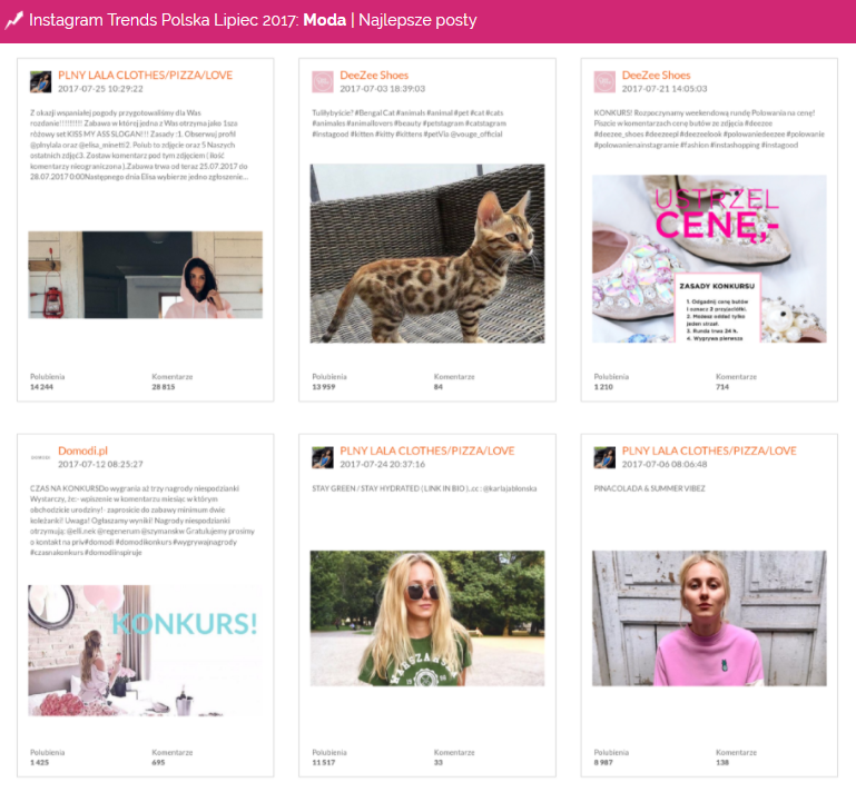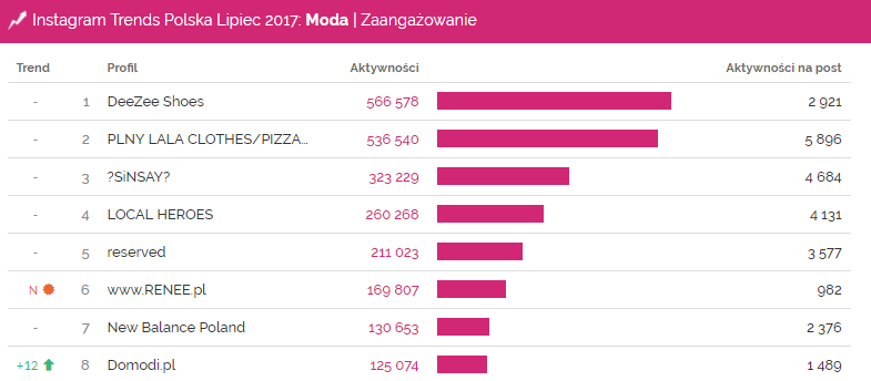 Instagram Trends Polska lipiec 2017 – Moda | zaangażowanie
