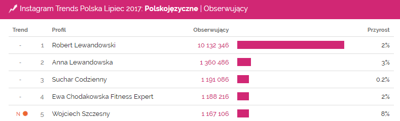Instagram Trends Polska lipiec 2017 – największe profile