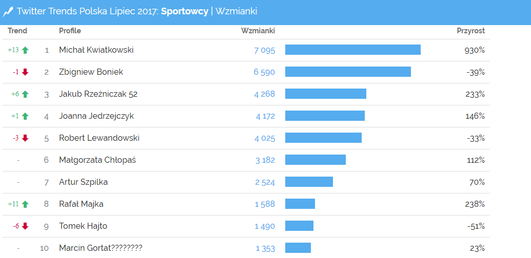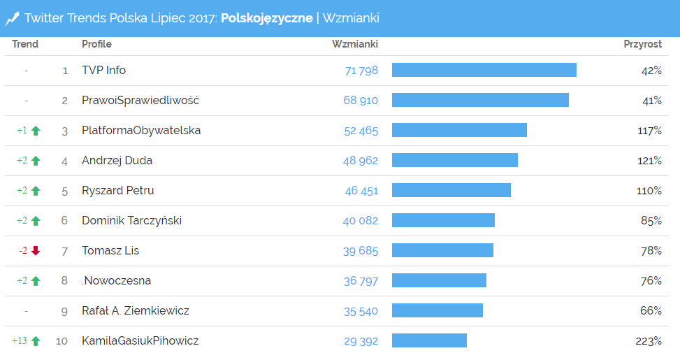 Najczęściej wspominane profile na Twitterze - Twitter Trends lipiec 2017