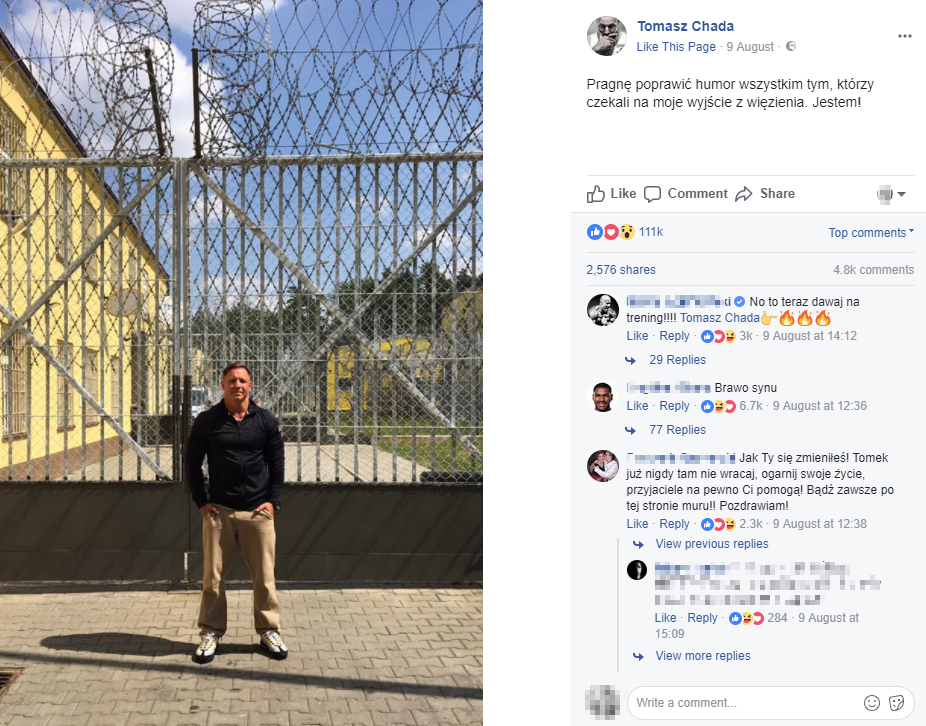 Przekonał się o tym raper Tomasz Chada, który po 2 latach pozbawienia wolności, wyszedł z więzienia. Jego post, w którym dzieli się informacją o wyjściu na wolność, był jednym z najlepszych postów miesiąca w kategorii Osoby i osiągnął liczbę ponad 111 tyś reakcji.