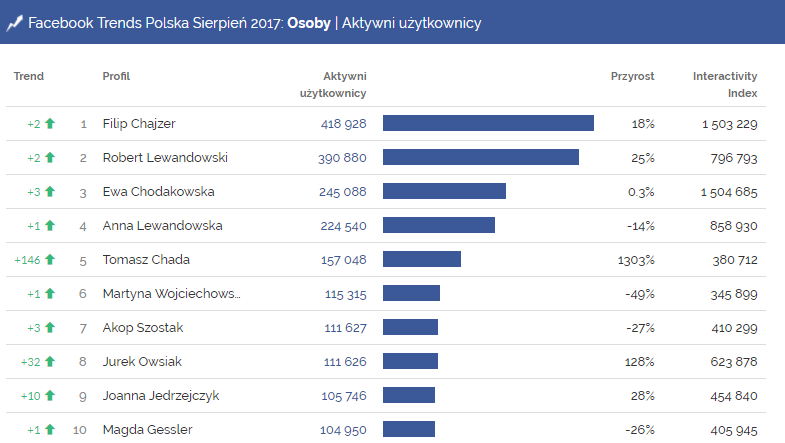 Facebook Trends Polska sierpień 2017 | Osoby