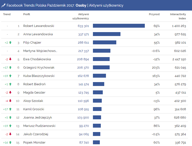 Liczba aktywnych użytkowników na profilach Osób na Facebooku | październik 2017