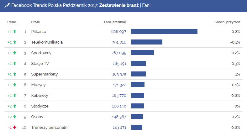 Branże na polskim Facebooku wg liczby fanów | październik 2017