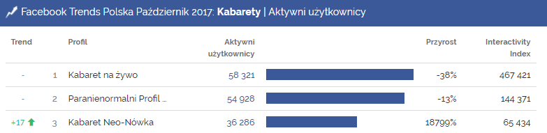 Profil, który aż się prosi o wyróżnienie w tym miejscu to Kabaret Neo-Nówka, który w porównaniu do września odnotował przyrost aż o 18799% aktywnych użytkowników!