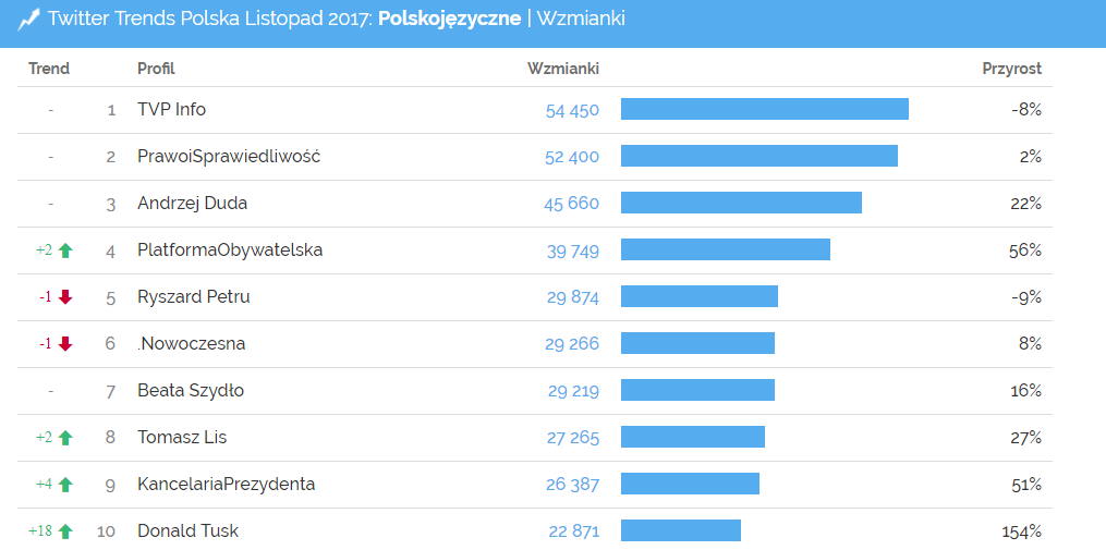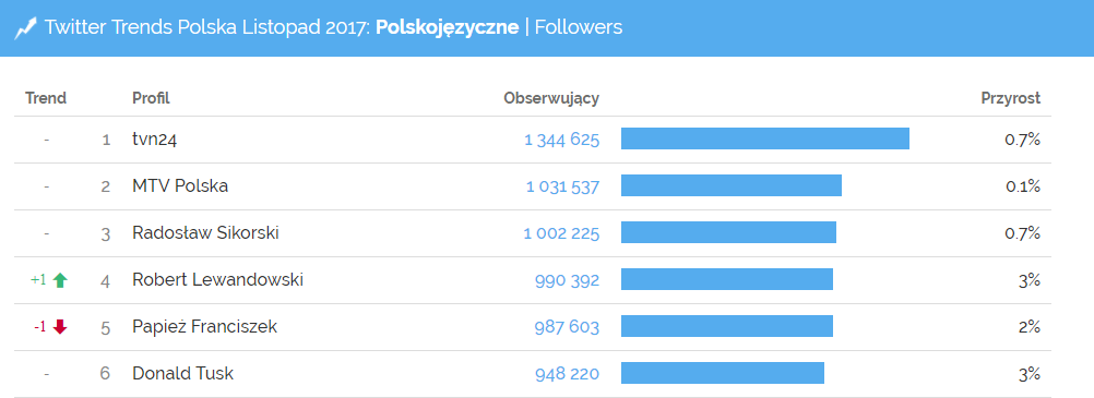 Najpopularniejsze polskie profile na Twitterze - Twitter Trends listopad 2017