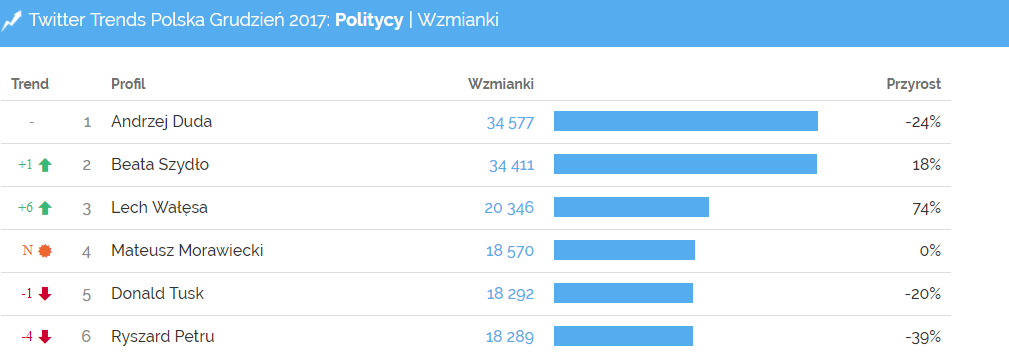 Najczęściej wspominani politycy na Twitterze – Twitter Trends grudzień 2017