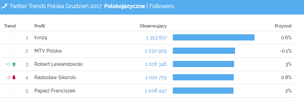 Największe polskie profile na Twitterze – Twitter Trends grudzień 2017