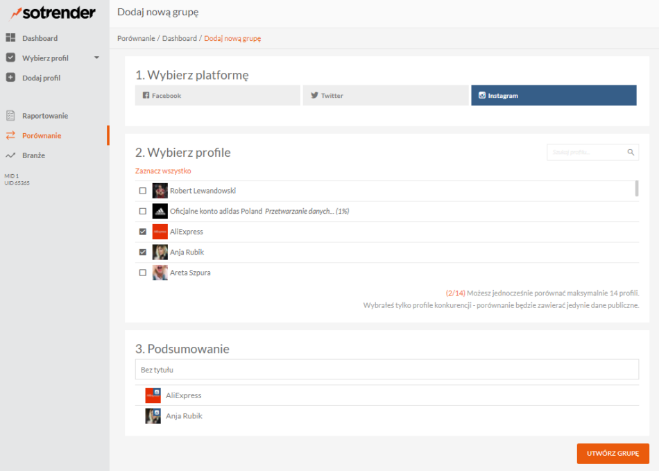 Odświeżony wygląd uzyskała sekcja Porównanie. Jeśli zalogujecie się do narzędzia, z pewnością pomyślicie, że coś Wam ona przypomina. Zgadza się! Została bowiem uspójniona z Waszą ulubioną sekcją, czyli Raportowaniem. Tworzenie porówniania jak i generowanie raportów jest więc w tej chwili bardzo podobne, a co za tym idzie szybsze i bardziej intuicyjne.