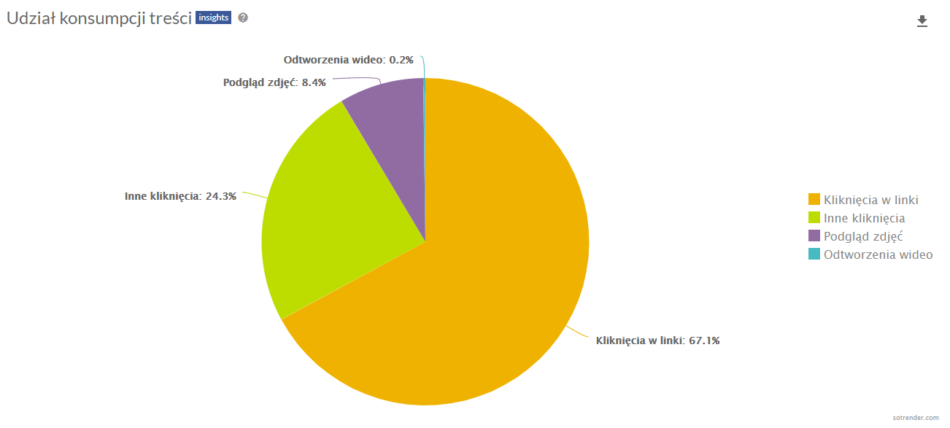 Liczba konsumpcji informuje nas ile kliknięć wykonano w stosunku do danego posta, linka, zdjęcia bądź wideo. Jest to niezwykle cenna informacja, ponieważ wskazuje, w jakie treści odbiorcy się najbardziej angażują, jakie są dla nich najbardziej interesujące.