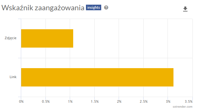 Wskaźnik zaangażowania ze względu na rodzaj posta