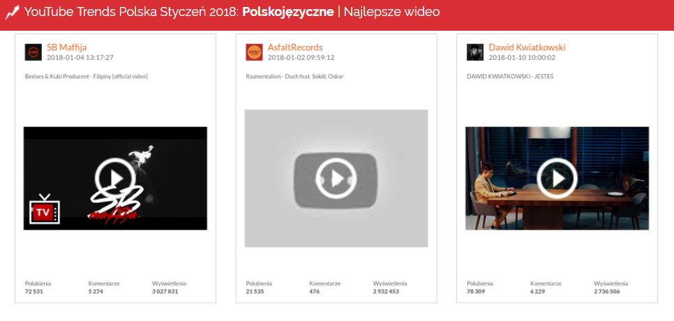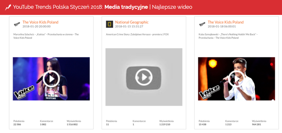 Najpopularniejsze wideo w kategorii Media Tradycyjne - YouTube Trends styczen 2018