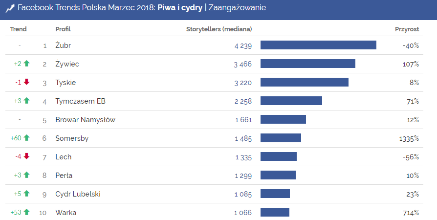 Profile o największym zaangażowaniu w kategorii Piwa i cydry na Facebooku