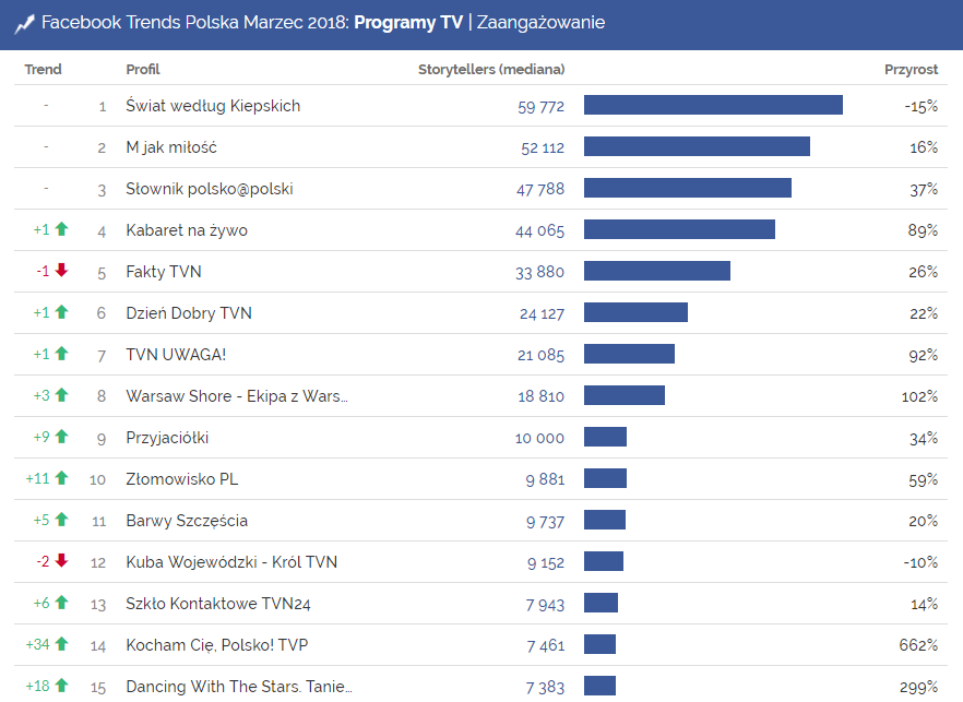 Profile programów telewizyjnych na Facebooku o największym zaangażowaniu w marcu