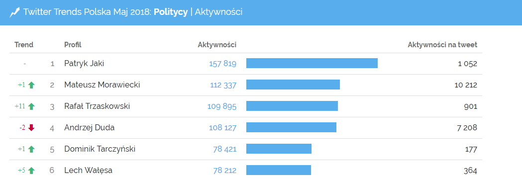 Politycy, któych tweety wywołały najwięcej aktywności – Twitter Trends maj 2018