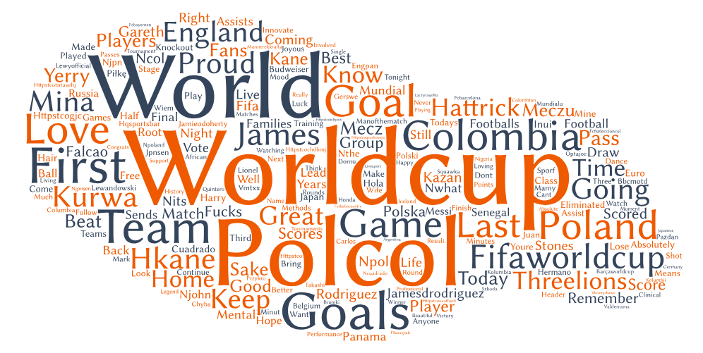 Wśród najczęściej używanych hashtagów i słów, najwięcej pojawiło się nazw krajów oraz nazwisk piłkarzy. Co ciekawe, sporo tweetów odnosiło się nie do samego spotkania, ale do sytuacji w ⅛ finału i na kogo trafi reprezentacja Anglii. Nie zabrakło też polskiego okrzyku rozpaczy.