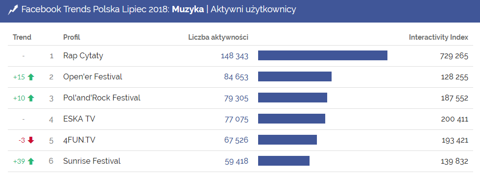 Jedne z największych festiwali muzycznych w Polsce – Open’er Festival, Sunrise Festival czy pierwsza edycja Pol’and’Rock Festival – odnotowały w lipcu znaczny wzrost aktywnych użytkowników na swoich profilach.