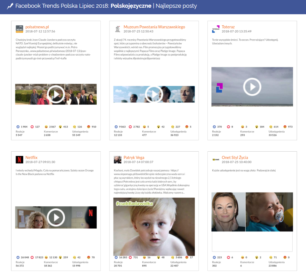 Warto również zwrócić uwagę na 3 kolejne najlepsze posty miesiąca. Jeden z nich dotyczył zbliżającej się kolejnej rocznicy Powstania Warszawskiego (które zawsze jest angażującym tematem), zaś kolejny to wideo opublikowane na profilu Netflixa, które promuje najnowszy sezon Orange Is the New Black. Nie jesteśmy zaskoczeni, że spotkało się ono z niemałym uznaniem społeczności Facebooka w ostatnich dniach lipca. Jeszcze go nie widzieliście? Koniecznie musicie to nadrobić!