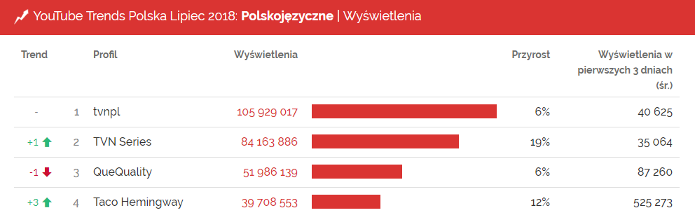 Top profile na polskim YouTube pod względem liczby wyświetleń