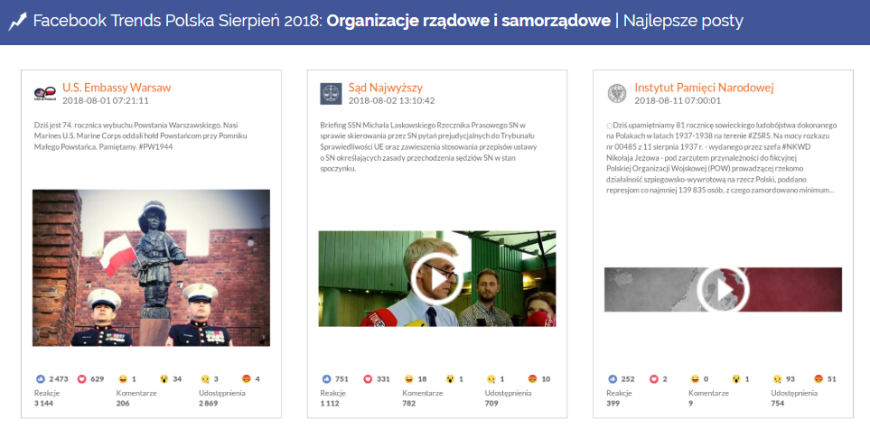 Najlepsze posty w kategorii Organizacje rządowe i samorządowe | Facebook, sierpień 2018