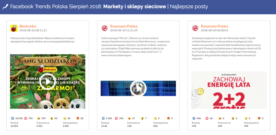 Najlepsze posty w kategorii Markety i sklepy sieciowe | Facebook, serpień 2018