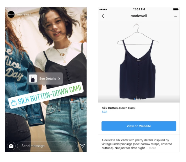 Instagram zaprezentował nową możliwość oznaczania produktów na Instagram Stories. Oznaczenie będzie prowadziło nas bezpośrednio do danego produktu wraz z ceną w aplikacji, skąd możemy zostać przekierowani do internetowego sklepu. Co więcej będzie także możliwość robienia zakupów przez zakładkę Eksploruj w której pojawi się nowy kafelek – zakupy.