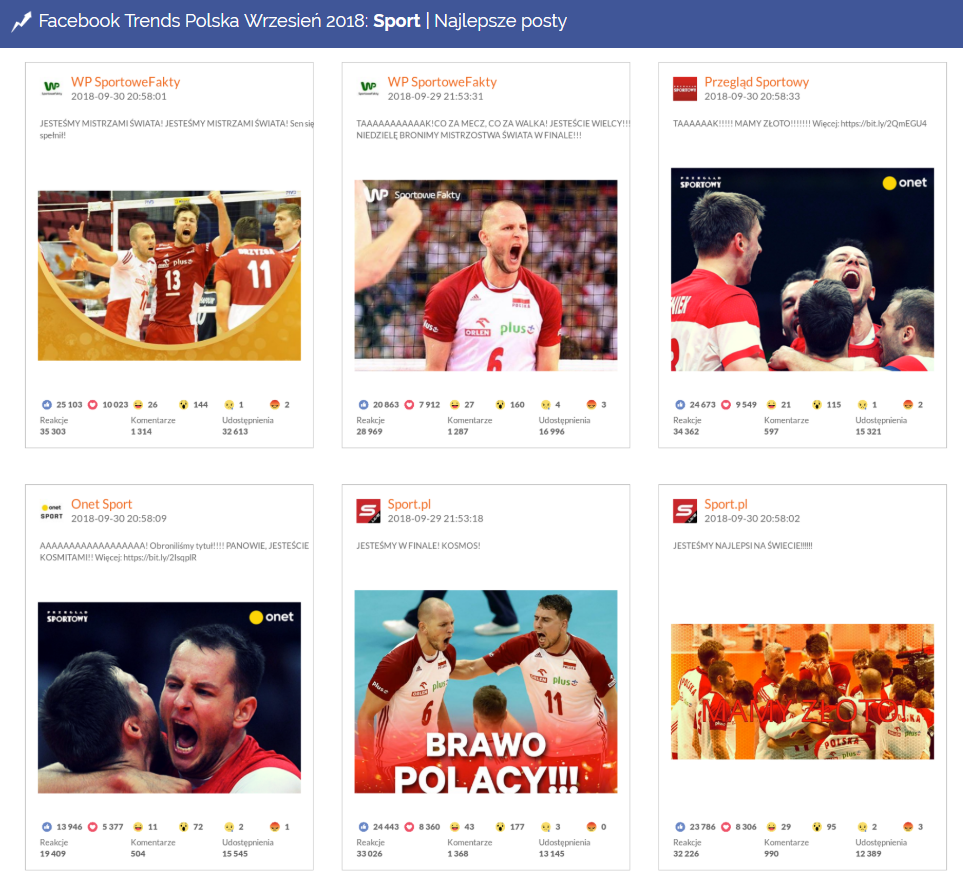 Czy więc jesteśmy zdziwieni, że aż 12 z 12 najlepszych postów z kategorii Sport dotyczyło właśnie tego wydarzenia? Zdecydowanie nie. Taka “monotonia” cieszy nawet w Trendsach 😉