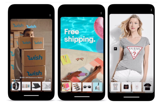 Po pierwsze, Snapchat udostępnia reklamowe “kolekcje” wszystkim reklamodawcom za pośrednictwem samoobsługowej platformy do kupowania reklam. Po kliknięciu w wybrany produkt z kolekcji zostaniemy przeniesieni na stronę, gdzie będziemy mogli dokonać zakupu. Oprócz tego Snapchat dodaje także nowe narzędzie, które umożliwi reklamodawcom przesyłanie plików katalogowych z produktami, które następnie będą mogli wykorzystać w kolekcjach i innych reklamach.