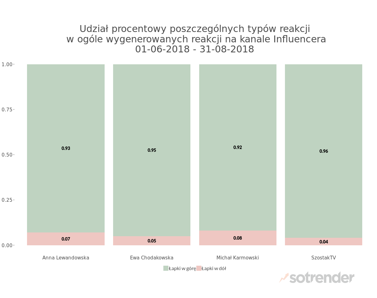 Reakcje na profilu wybranych influencerów, badanie Influence Index, Sotrender