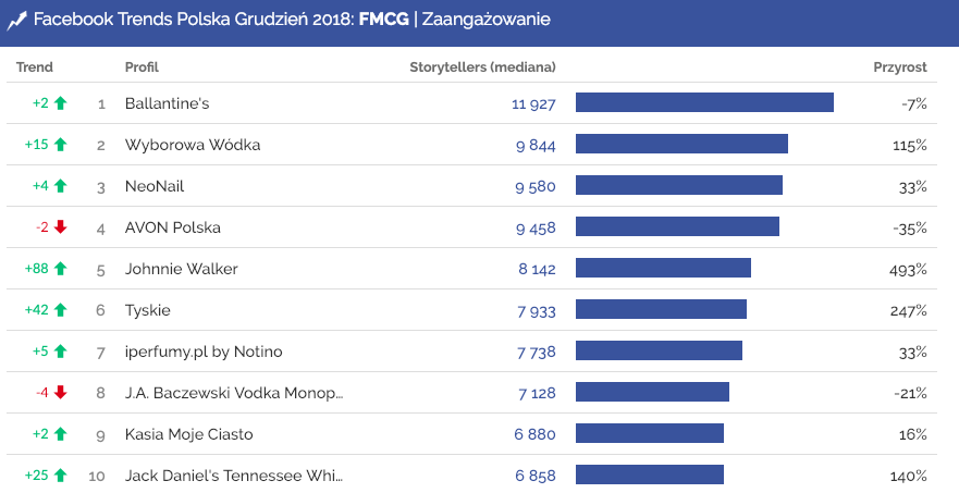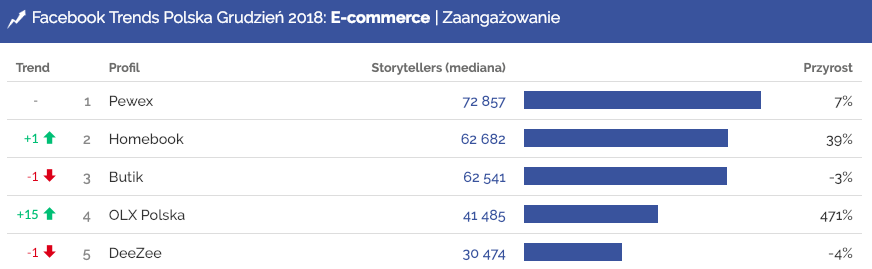 Facebook Trends, Zaangażowanie w kategorii E-commerce, grudzień 2018
