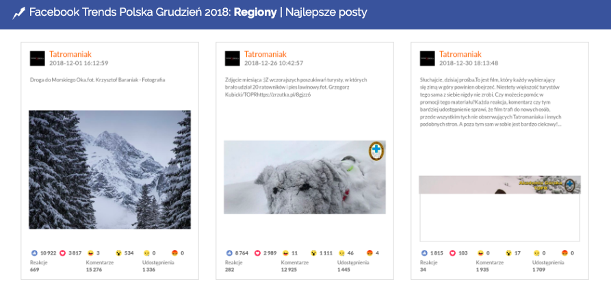 Najlepsze posty w grudniu na Facebooku a kategorii Regiony