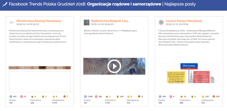 Organizacje rządowe i samorządowe, Facebook, grudzień 2018