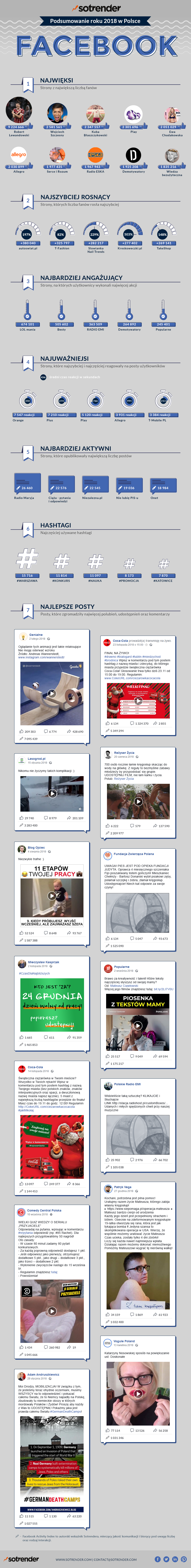 Minął kolejny rok na Facebooku, działo się jak zwykle dużo, użytkownicy interesowali się rozmaitymi tematami, ale liderzy naszych zestawień pozostali ci sami. Kto był najpopularniejszy na Facebooku w 2018 roku? Dowiecie się tego z naszej infografiki!