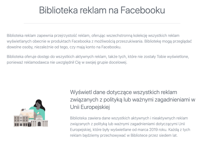 - Raport dotyczący Biblioteki Reklam: www.facebook.com/ads/library/report