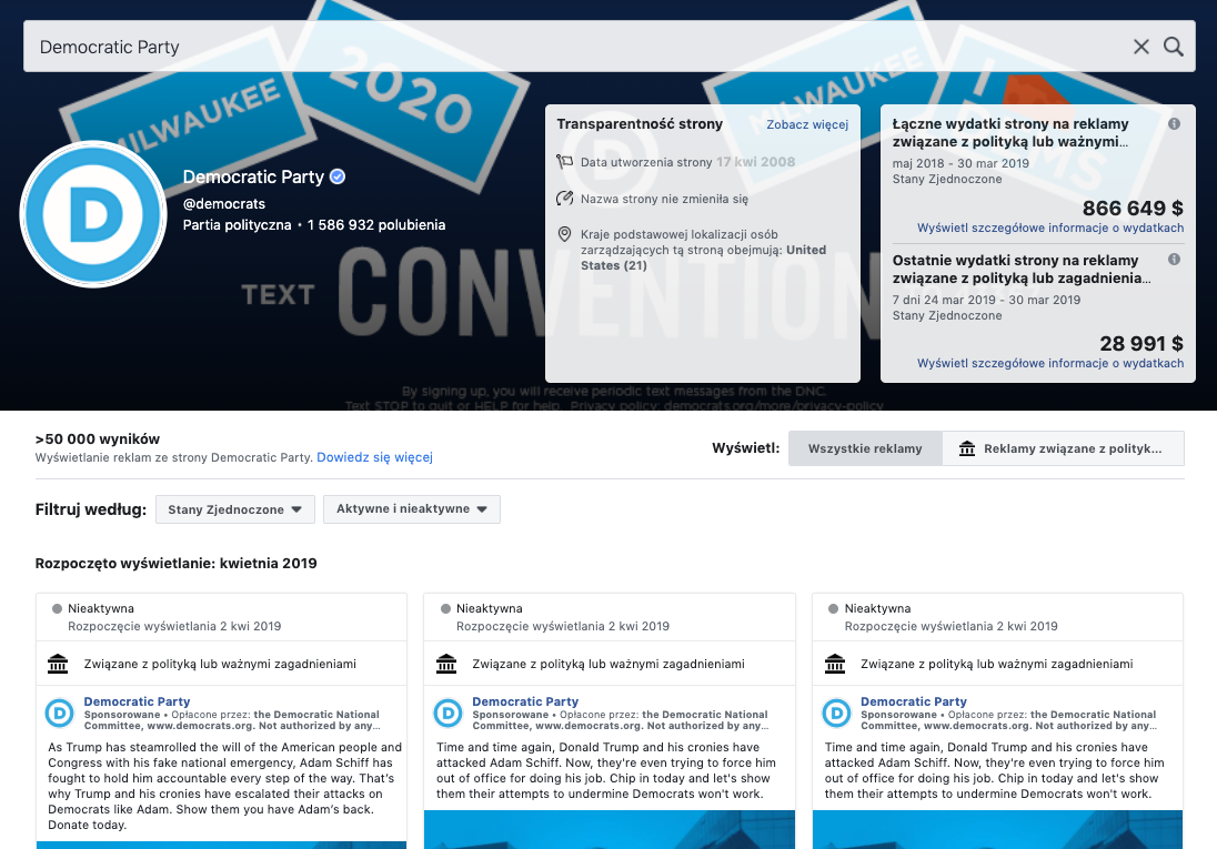 Istnieje również osobny widok, w którym wyświetlone zostaną jedynie reklamy polityczne.