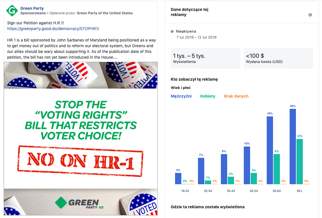 Szczegóły dot. reklamy na przykładzie Green Party w Stanach Zjednoczonych [zobacz więcej]