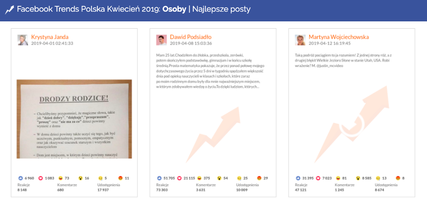 Najlepsze posty w kategorii Osoby w kwietniu na Facebooku