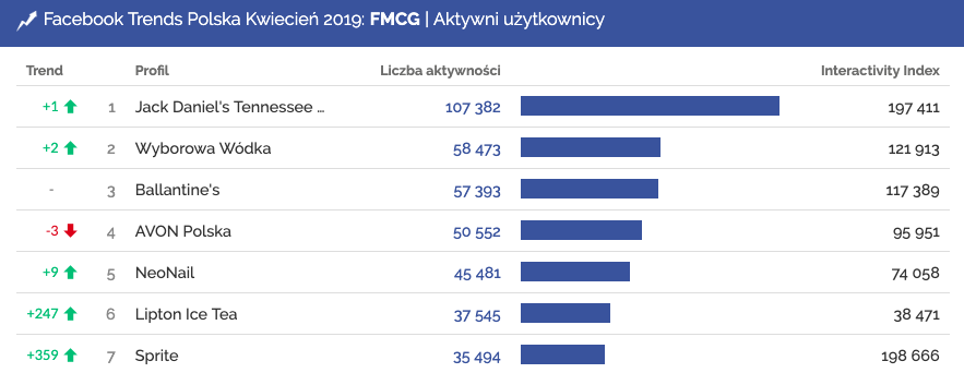 Na wstępie ważna informacja: w kwietniowym wydaniu Facebook Trends niedostępne są wykresy Zaangażowania. Wskaźnik PTAT, który jest przedstawiony na tych wykresach, na skutek błędu po stronie Facebooka nie był zwracany przez API Facebooka od 11 kwietnia. Dlatego też nie ma możliwości przedstawienia wykresów Zaangażowania dla profili facebookowych za kwiecień 2019 roku.