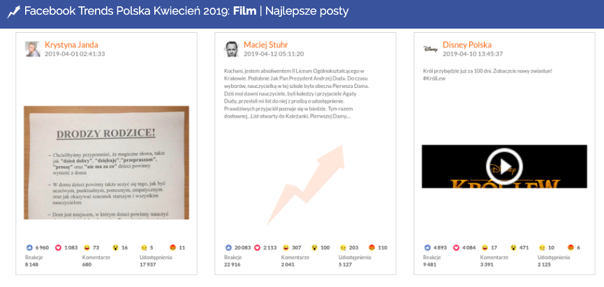 Najlepsze posty w kategorii Film na Facebooku w kwietniu